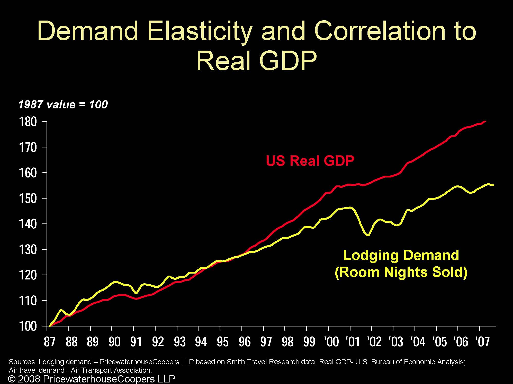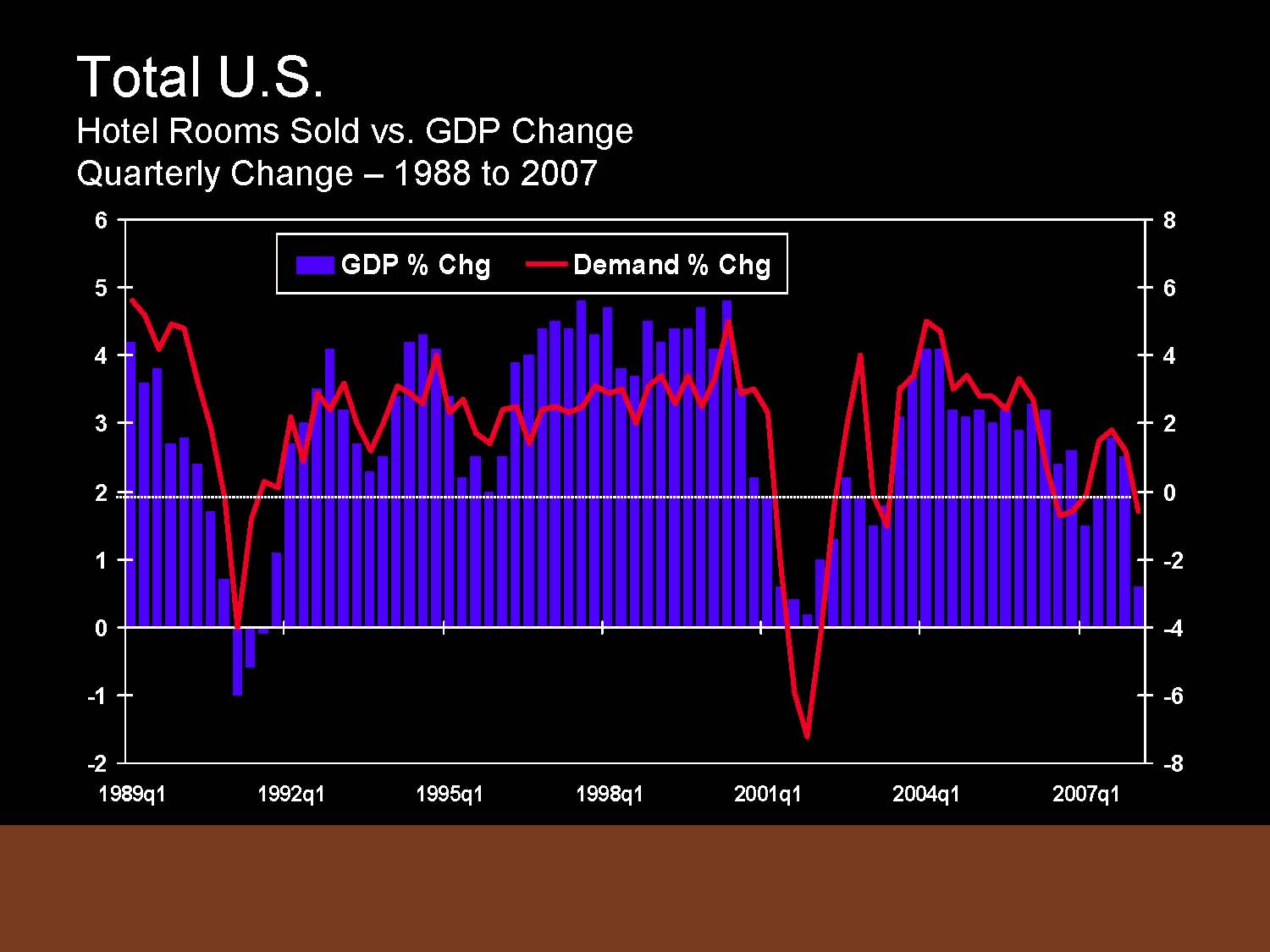 • There is still a very high correlation between changes in U.S. GDP and demand for hotel rooms (as measured by room nights sold)