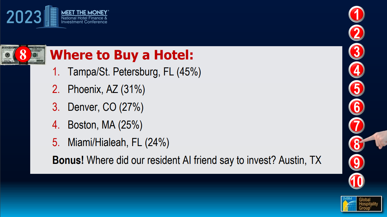 JMBM’s Global Hospitality Group® hosted the 30th edition of Meet the Money® national hotel conference on May 1-3, 2023. Alongside investment boot camps and insightful discussion panels, the conference featured several exciting special presentations interpreting the latest data and industry sector highlights. In Part 4 of this blog series, we highlight the special presentations given by Mike Cahill and Paul Single.