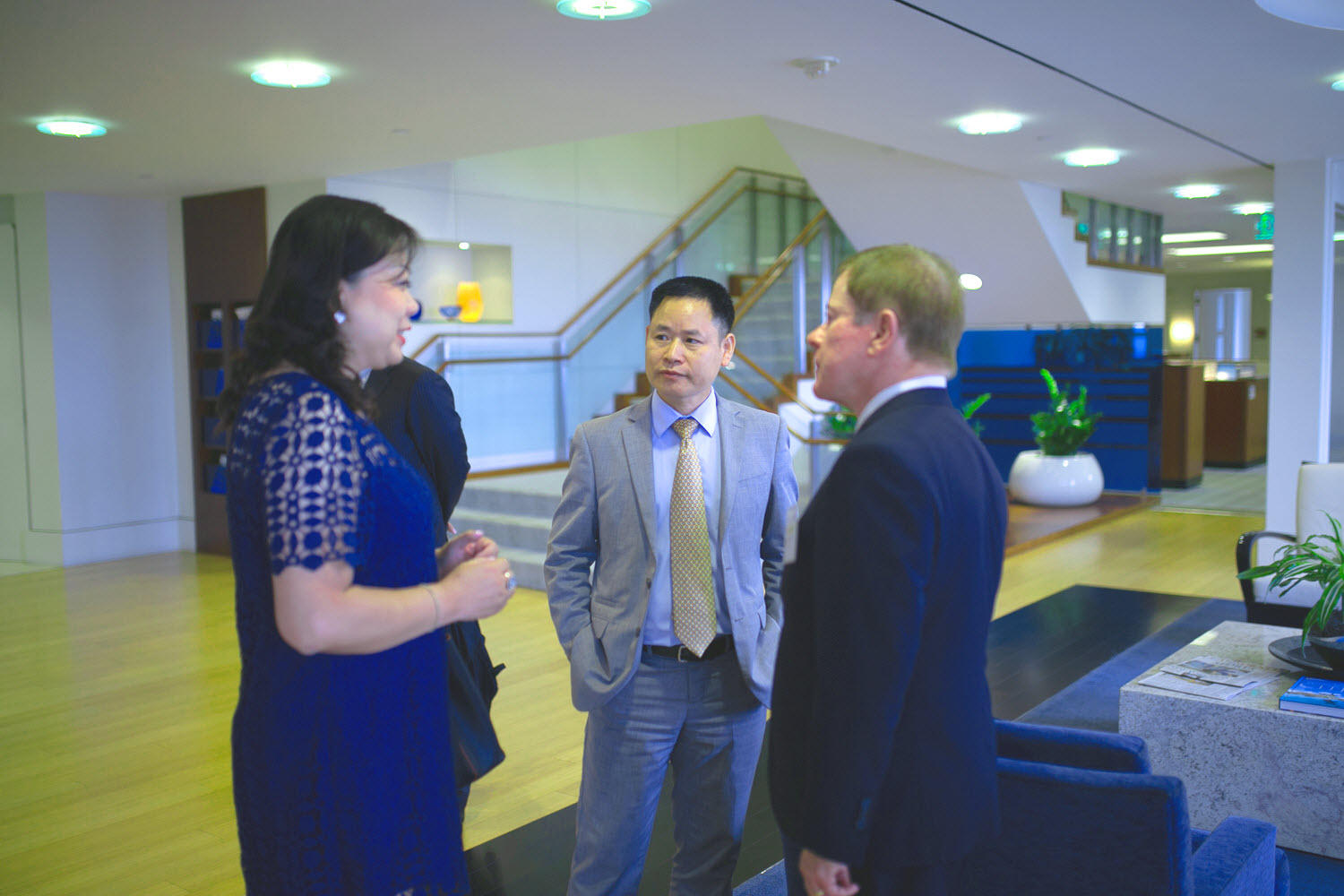 Later, Jim Butler had a friendly conversation with his old friends from Industrial & Commercial Bank of China (ICBC), the largest bank in the world. In the photo above, on the right is Jim Butler. In the middle is Shulin (Forest) Peng, head of ICBC North America FI Center. On the left is Alice Gao, Vice President of ICBC.