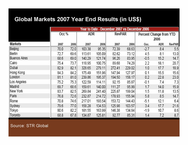 As discussed above, 2007 was a very good year for the U.S. And outside the U.S., global markets generally did very well too. Look at the numbers for Dubai, London and Sydney!