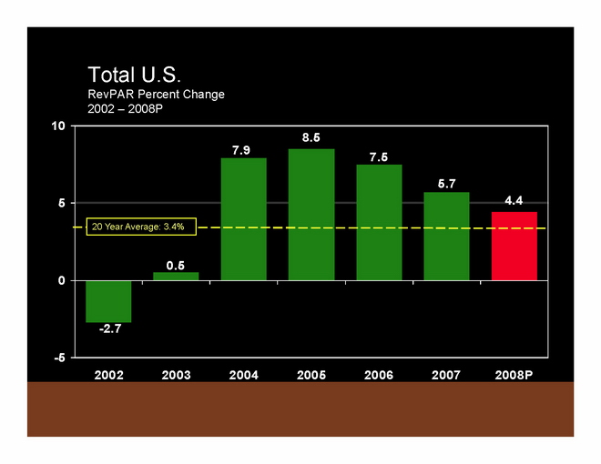 And when you put it all together, it shows that last year we enjoyed a 5.7% increase in RevPAR, down from the prior 3 record-breaking years, but nonetheless substantially above the 20 year average of 3.4% RevPAR growth. And compared to the 20 year average, next year’s projected 4.4% looks pretty good — just not quite as good as the last few years.
